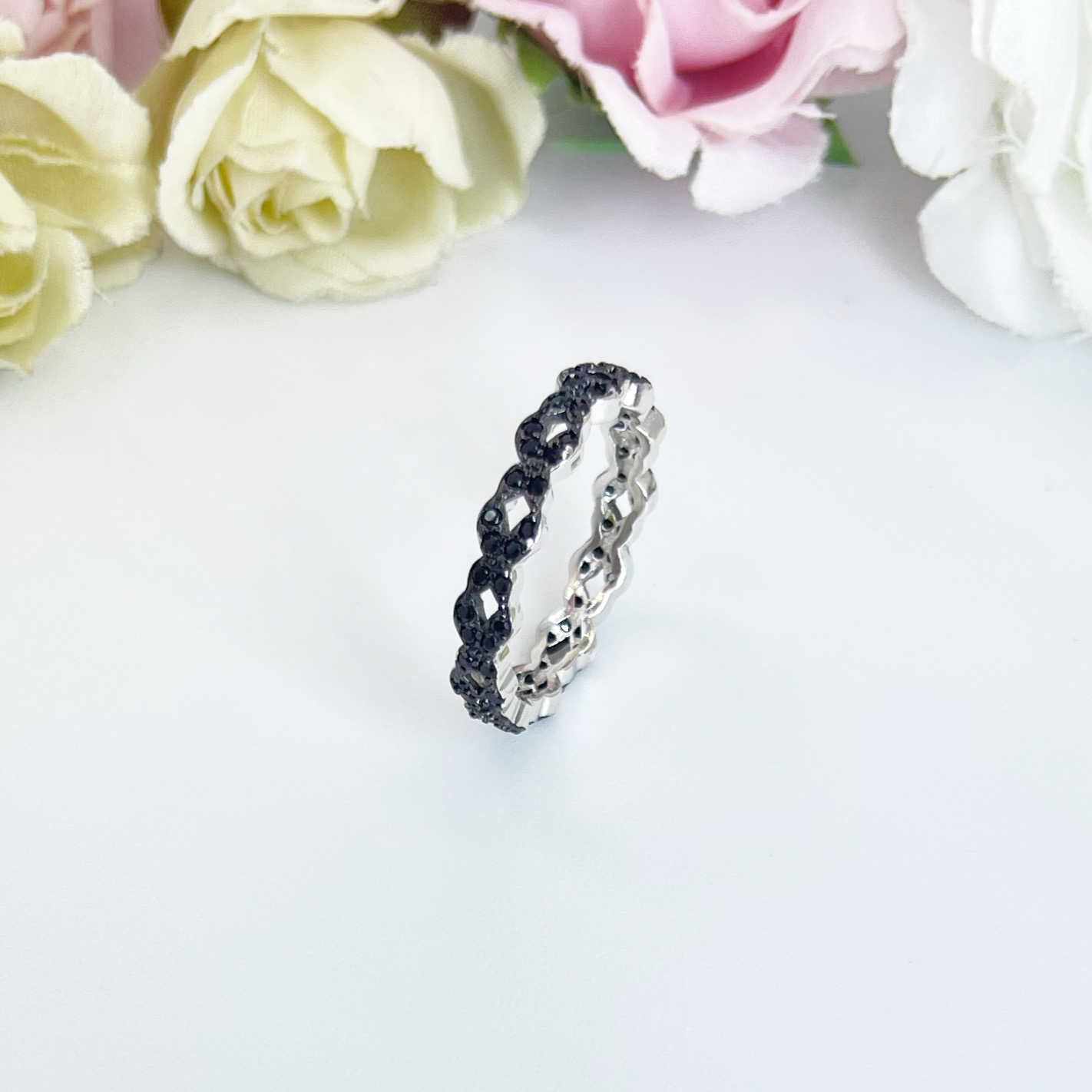 STERLING SILVER BLACK CUBIC ZIRCONIA ETERNITY RING