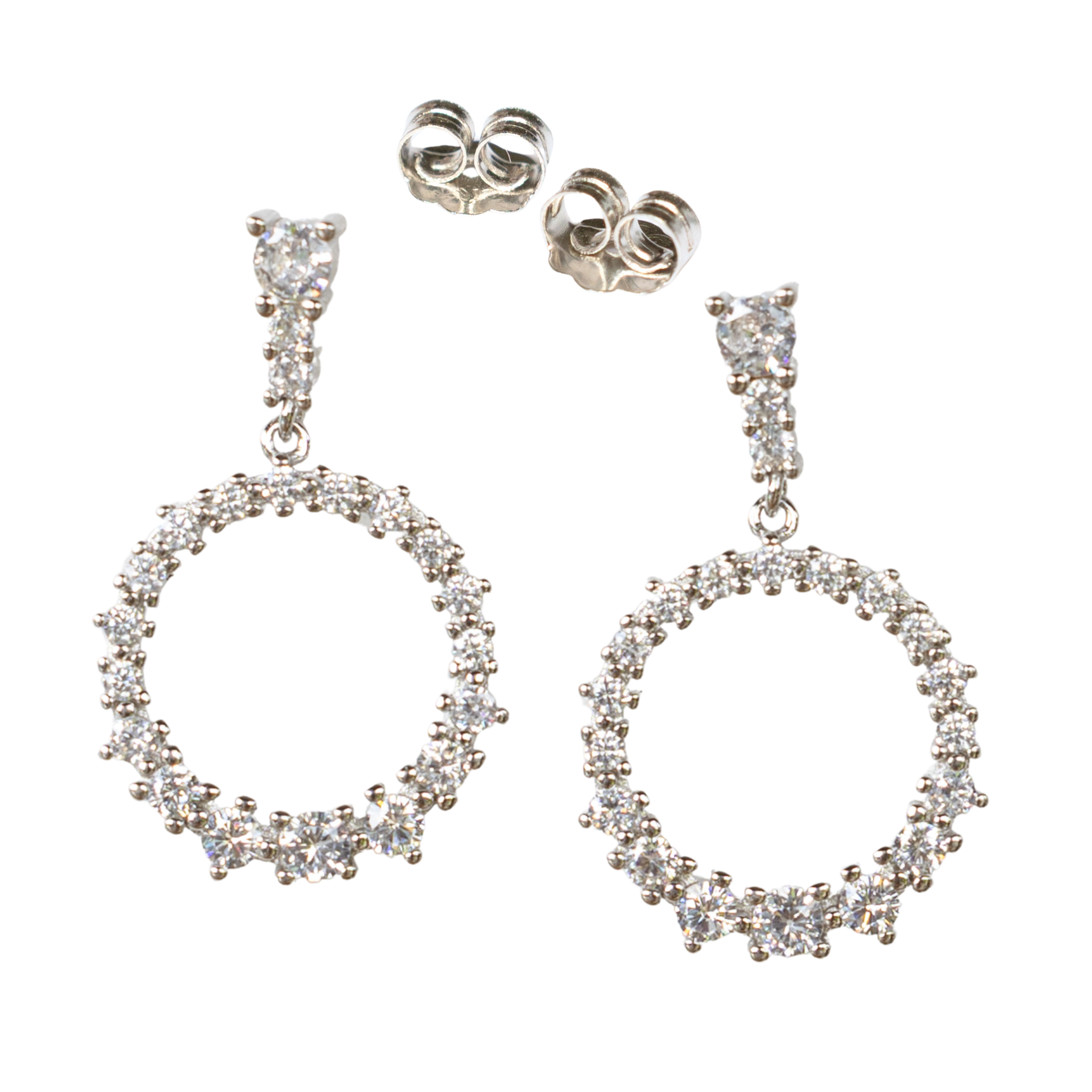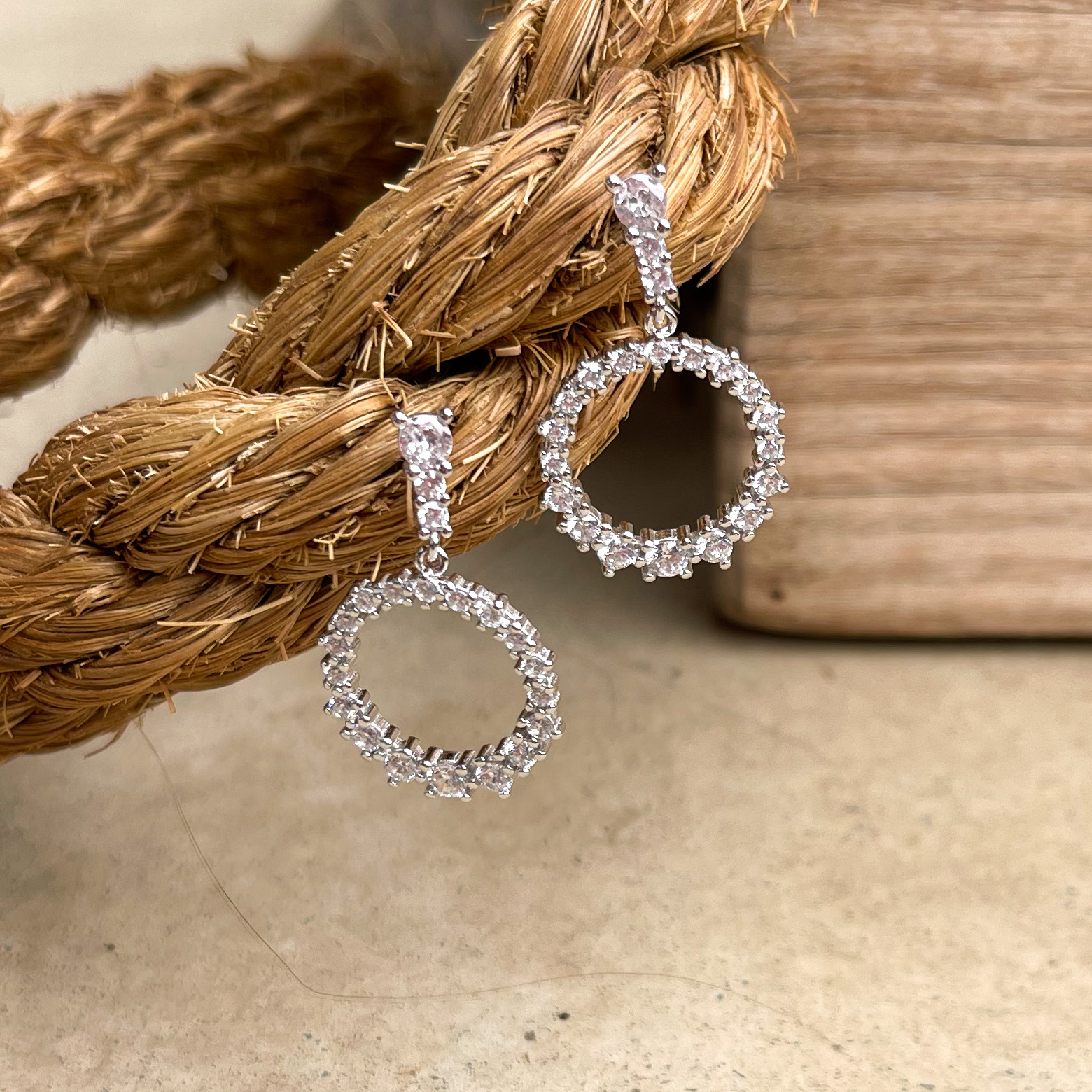 STERLING SILVER BRIDAL CUBIC ZIRCONIA CIRCLE STUD EARRINGS
