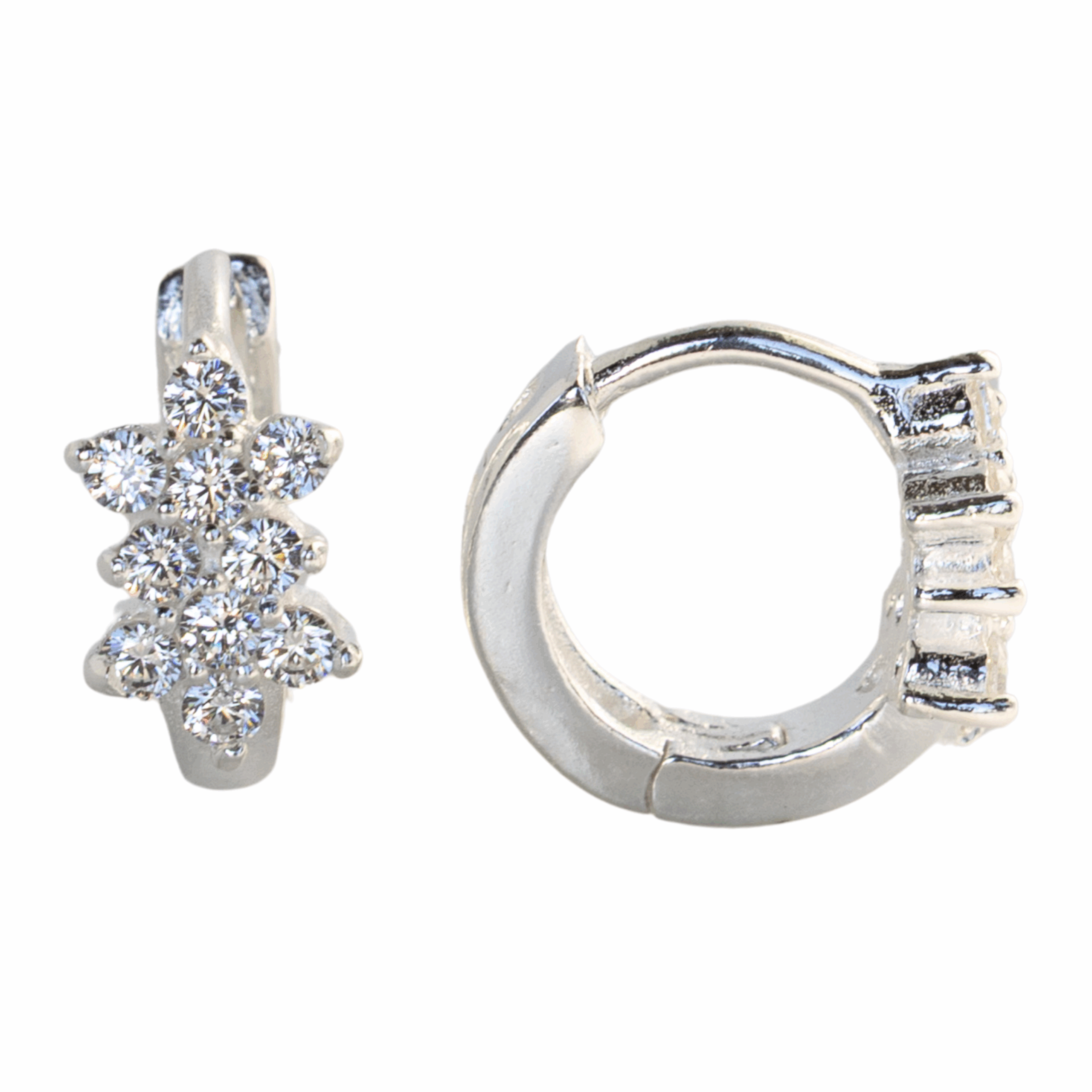 STERLING SILVER CUBIC ZIRCONIA DOUBLE FLOWER HUGGIE EARRINGS