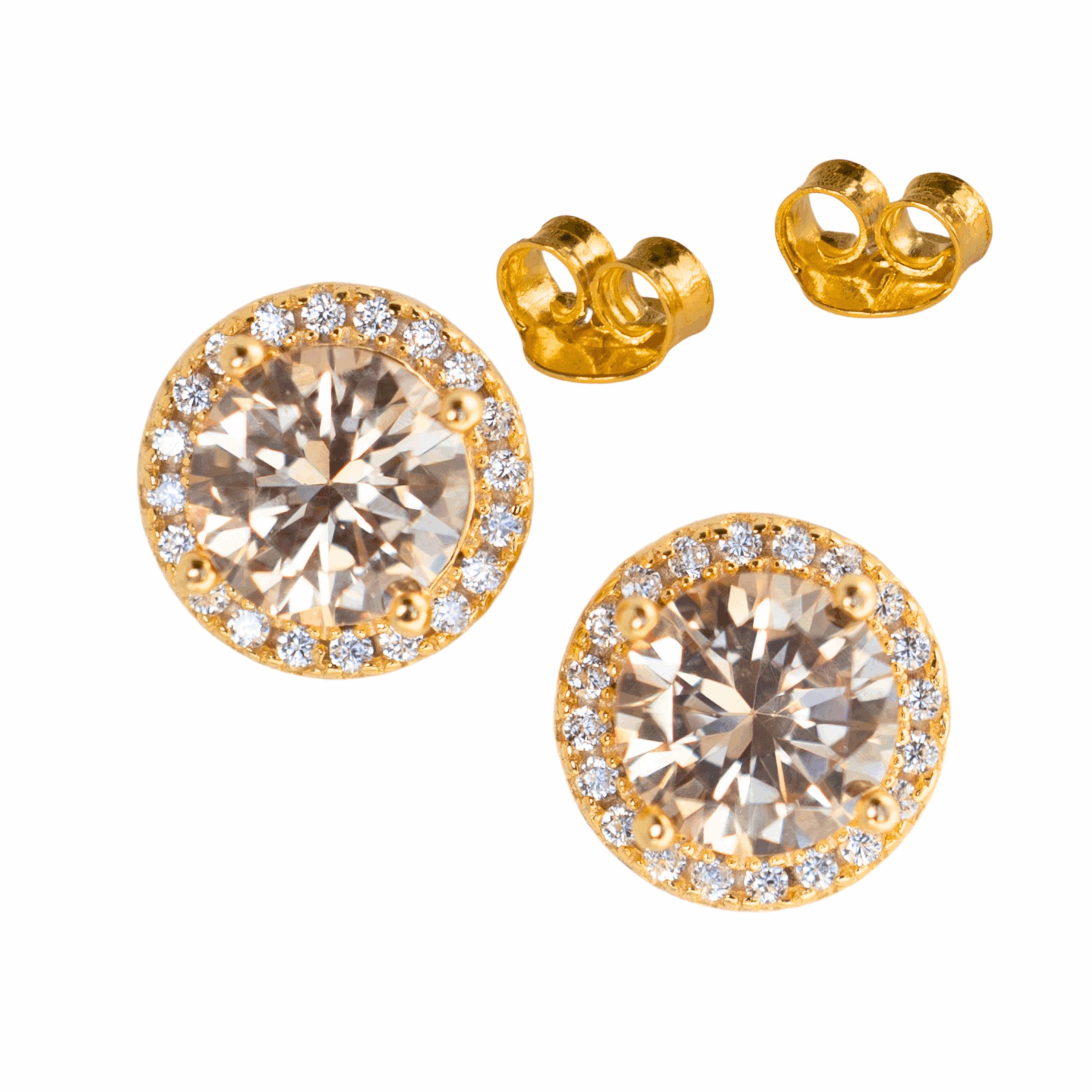 STERLING SILVER GOLD PLATED GOLD CUBIC ZIRCONIA STUD EARRINGS