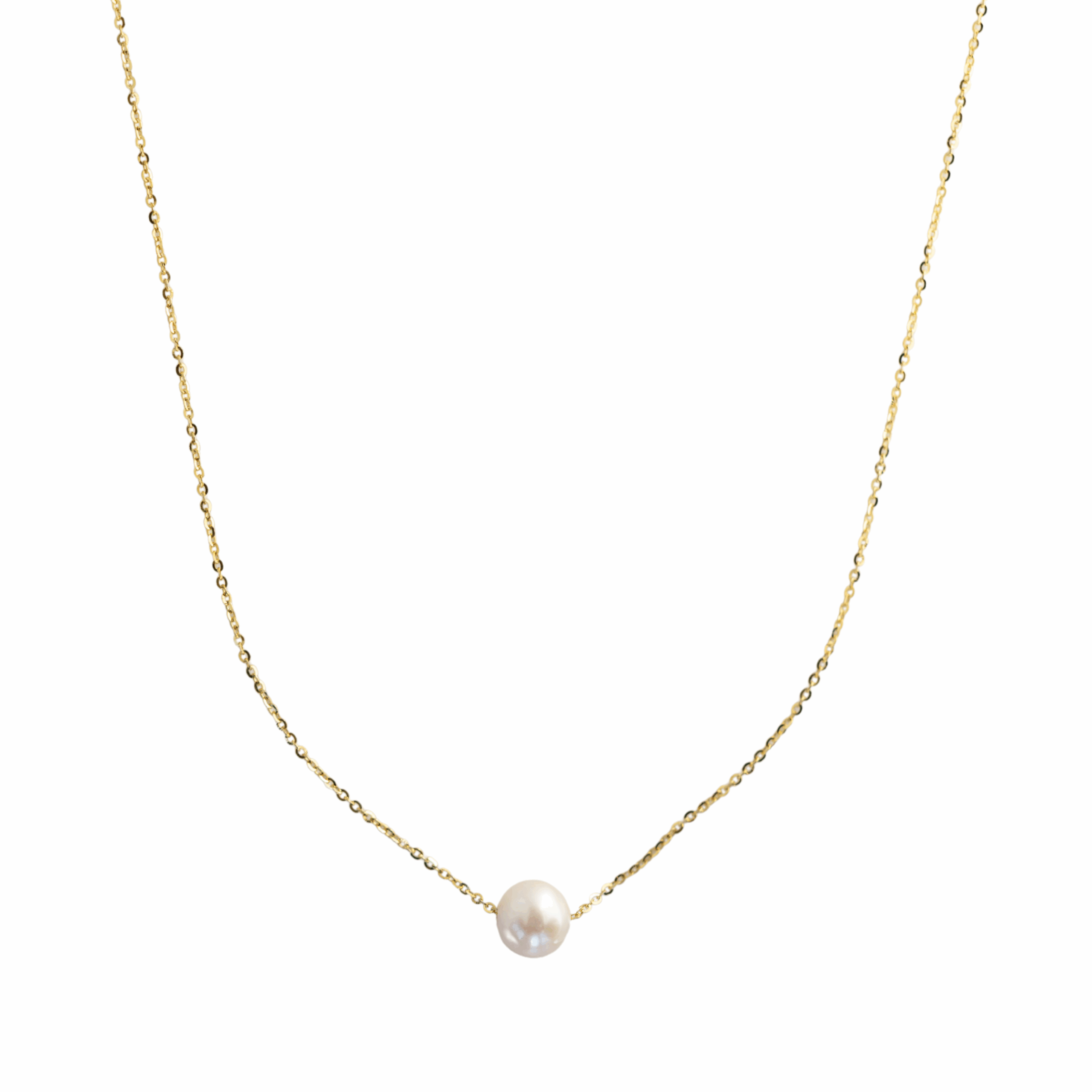 STERLING SILVER GOLD PLATED FLOATING FRESHWATER PEARL NECKLACE