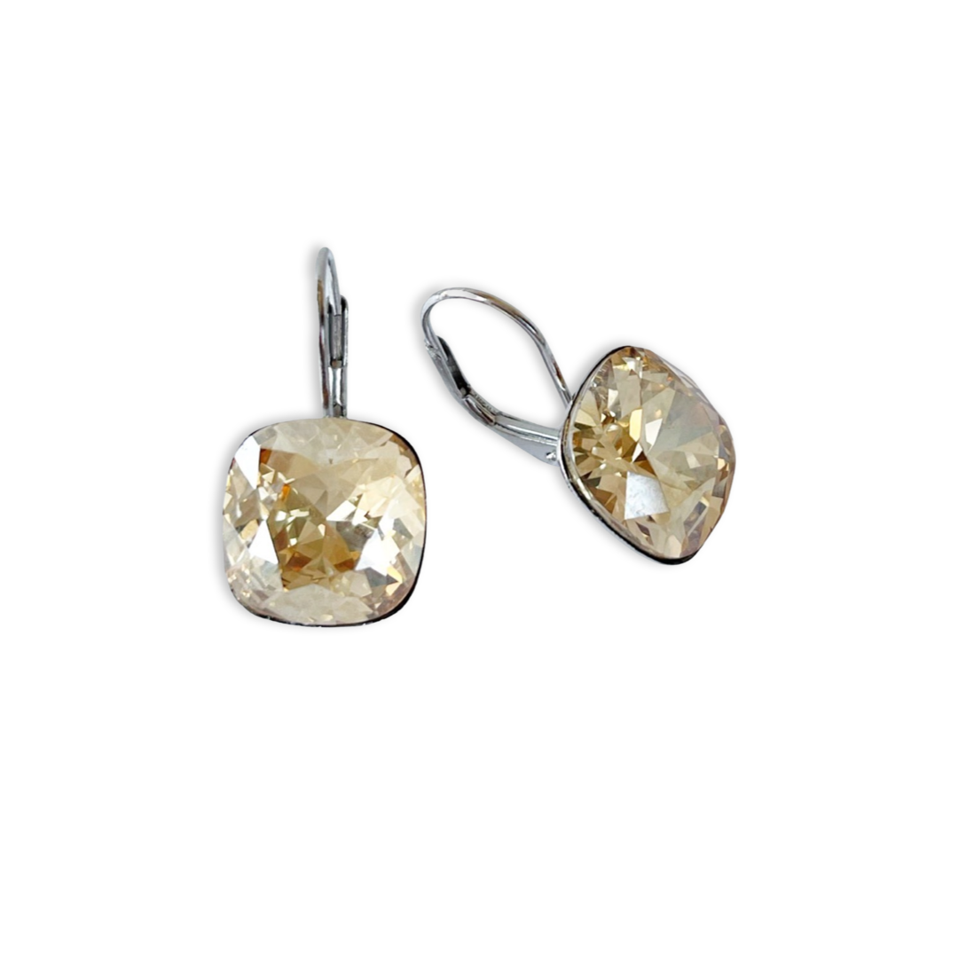 STERLING SILVER GOLDEN SHADOW CUSHION CUT SWAROVSKI CRYSTAL EARRINGS