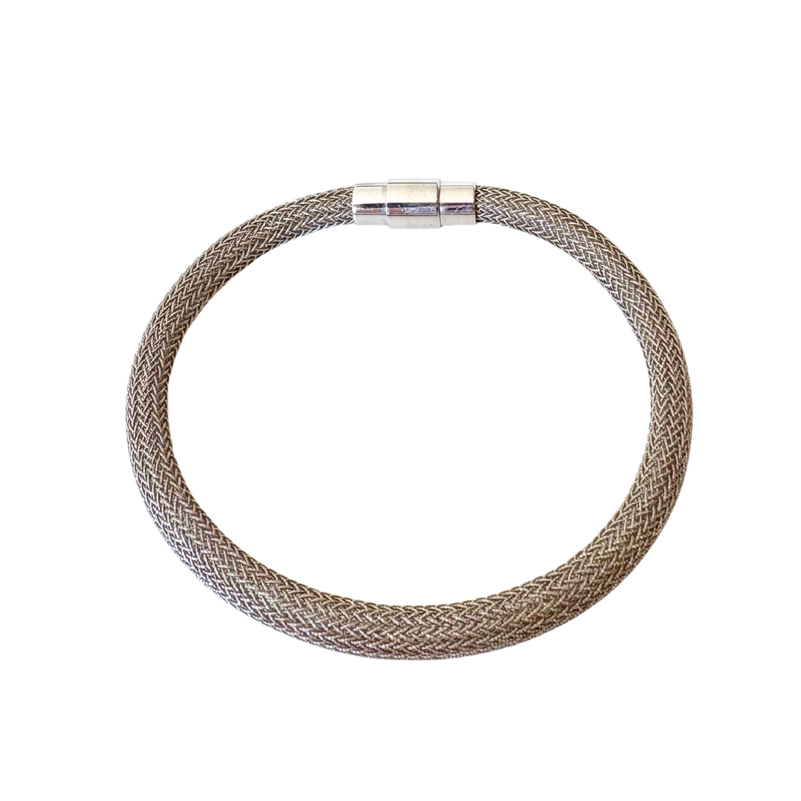 SHINY GREY METALLIC CORD STAINLESS STEEL MAGNETIC CLASP BANGLE