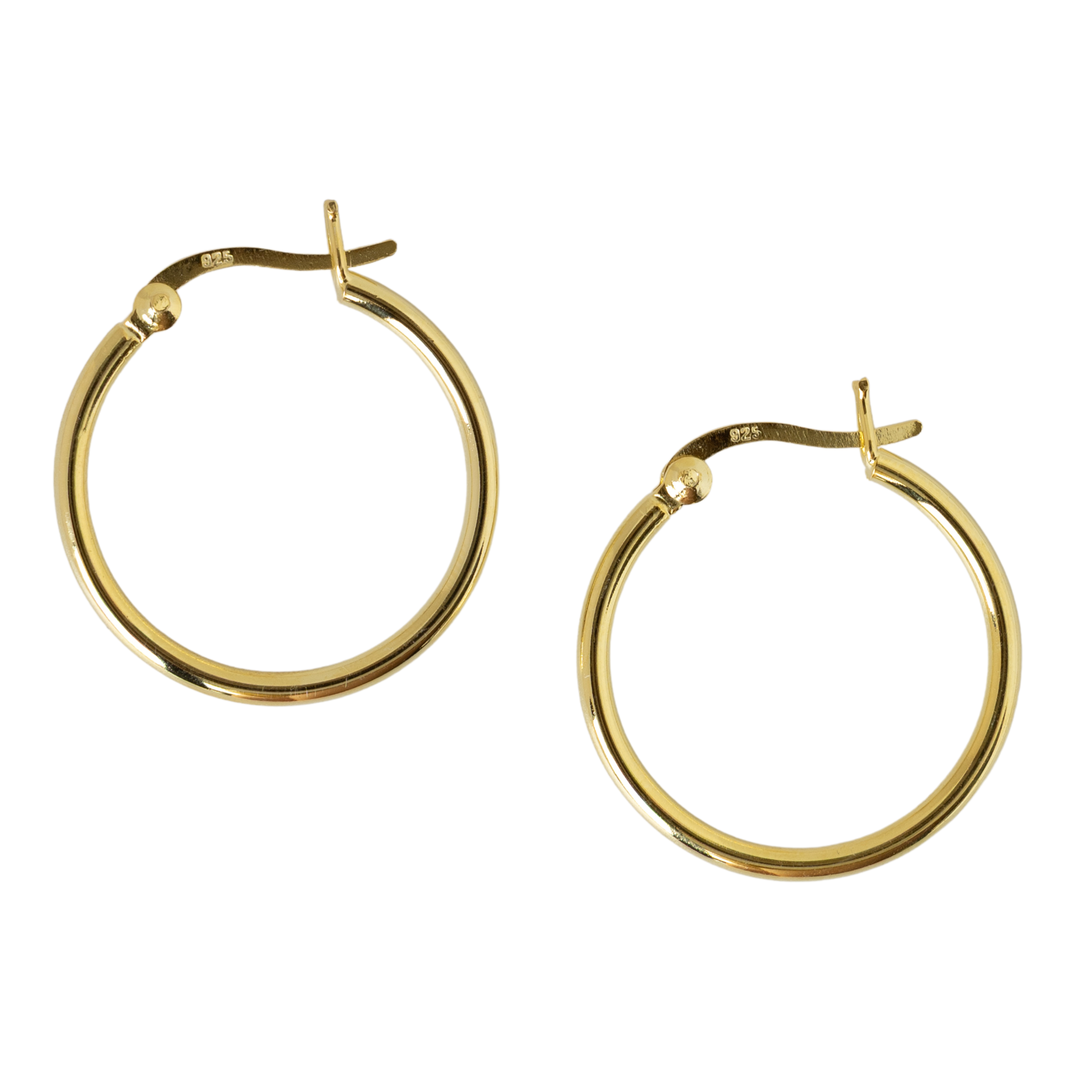 STERLING SILVER GOLD PLATED MEDIUM HOOP EARRINGS