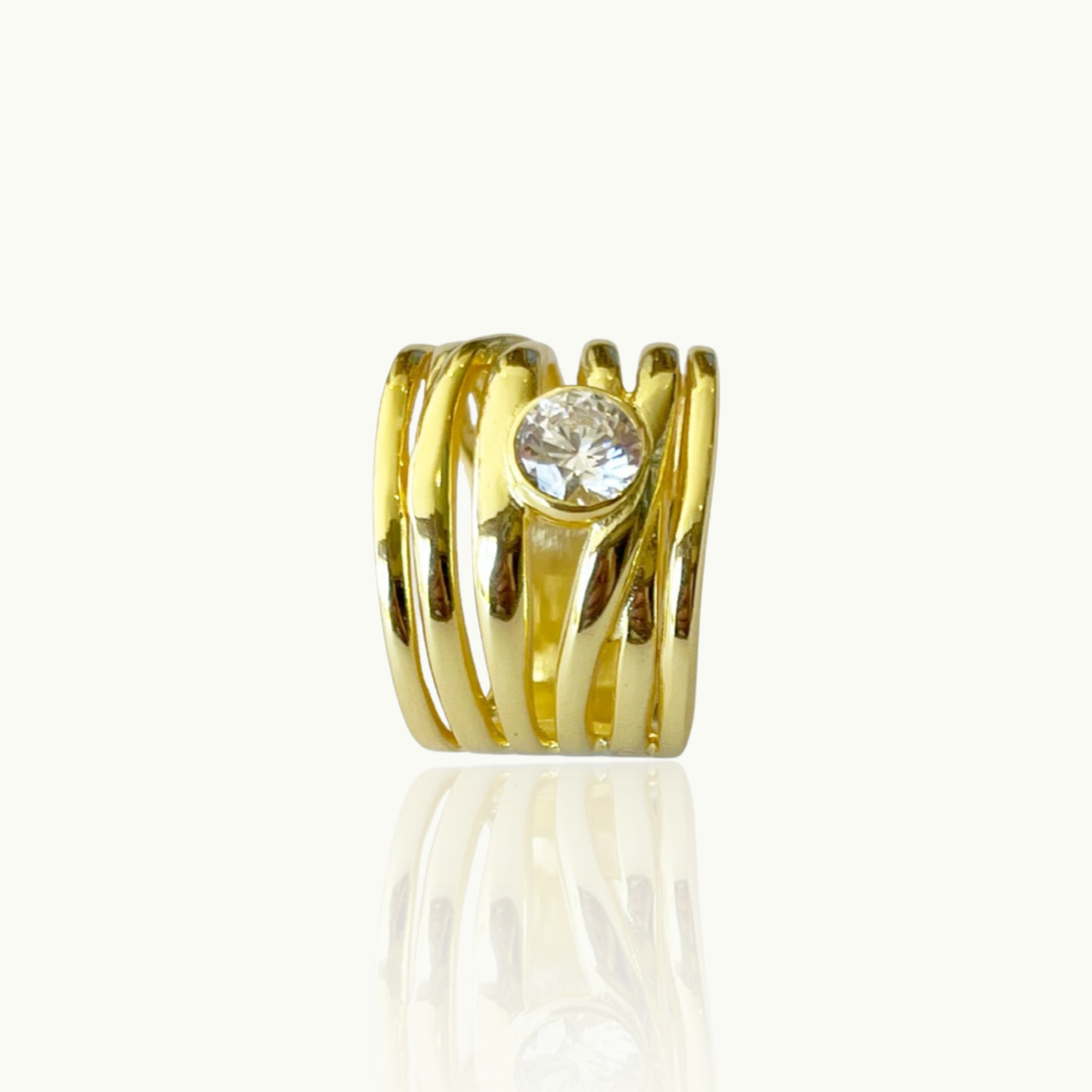 STERLING SILVER GOLD PLATED CLEAR CUBIC ZIRCONIA MULTIPLE BAND RING
