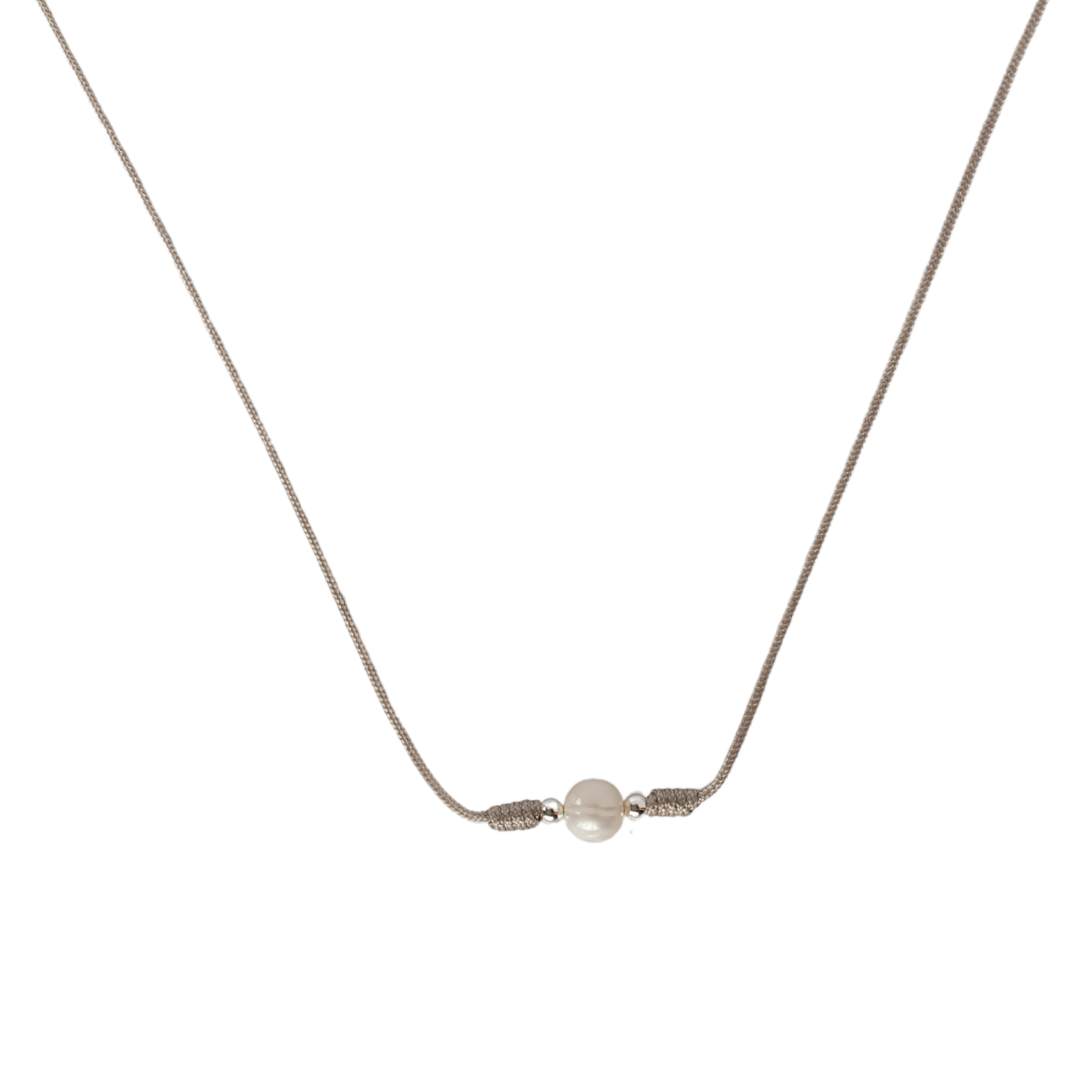 STERLING SILVER FRESHWATER PEARL NUDE SILK NECKLACE