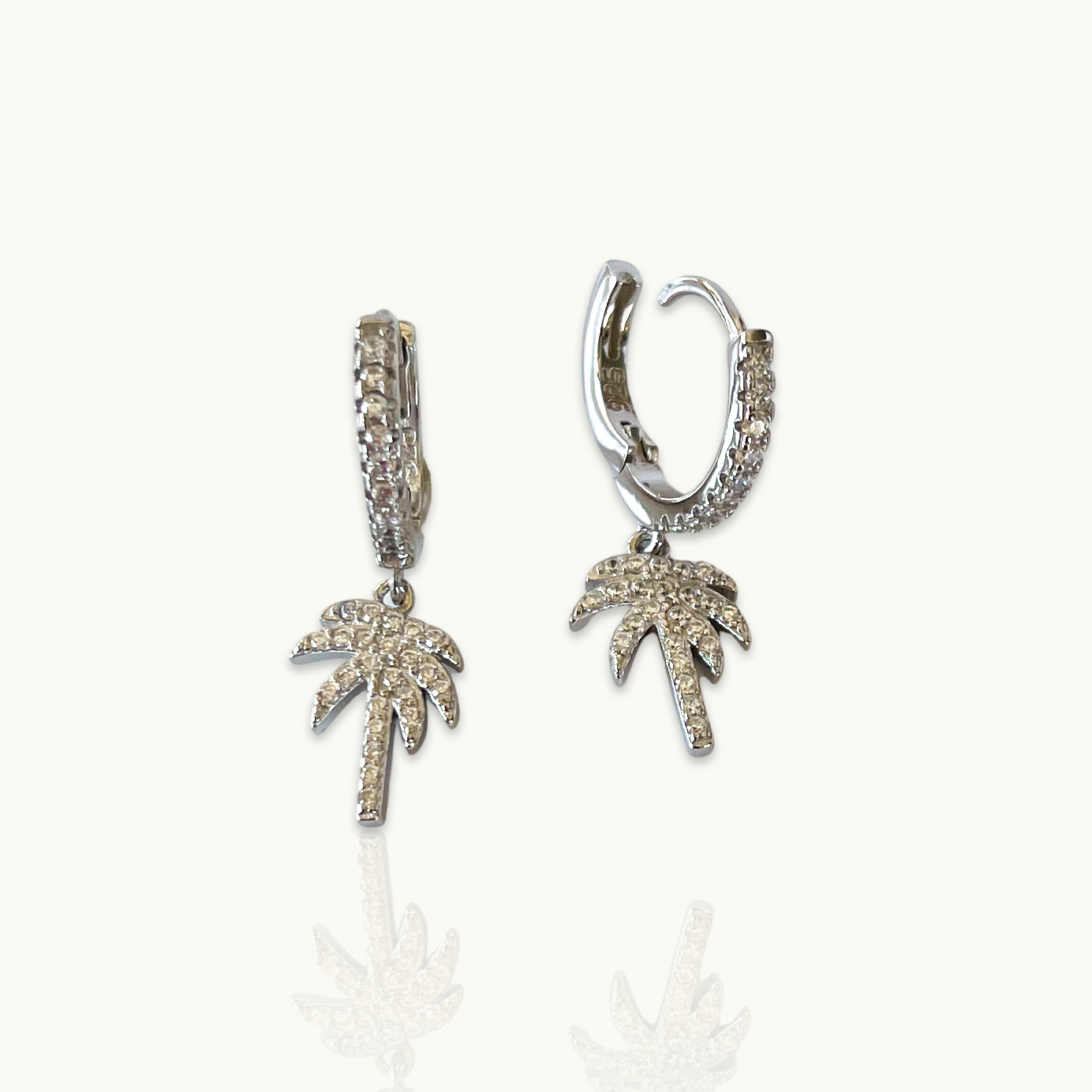 STERLING SILVER CUBIC ZIRCONIA PALM TREE HUGGIE EARRINGS