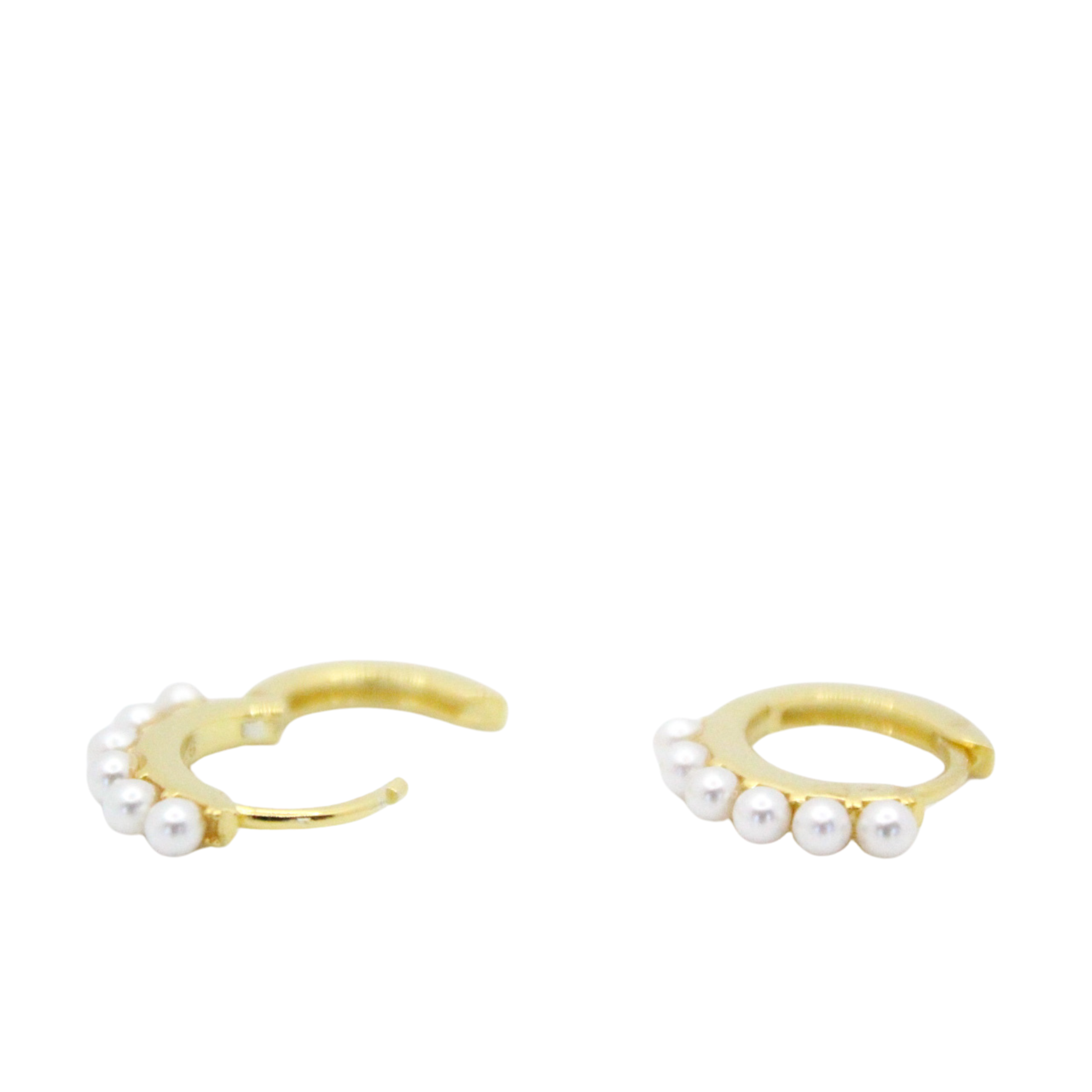 STERLING SILVER GOLD PLATED 6 SHELL PEARL HUGGIE EARRINGS