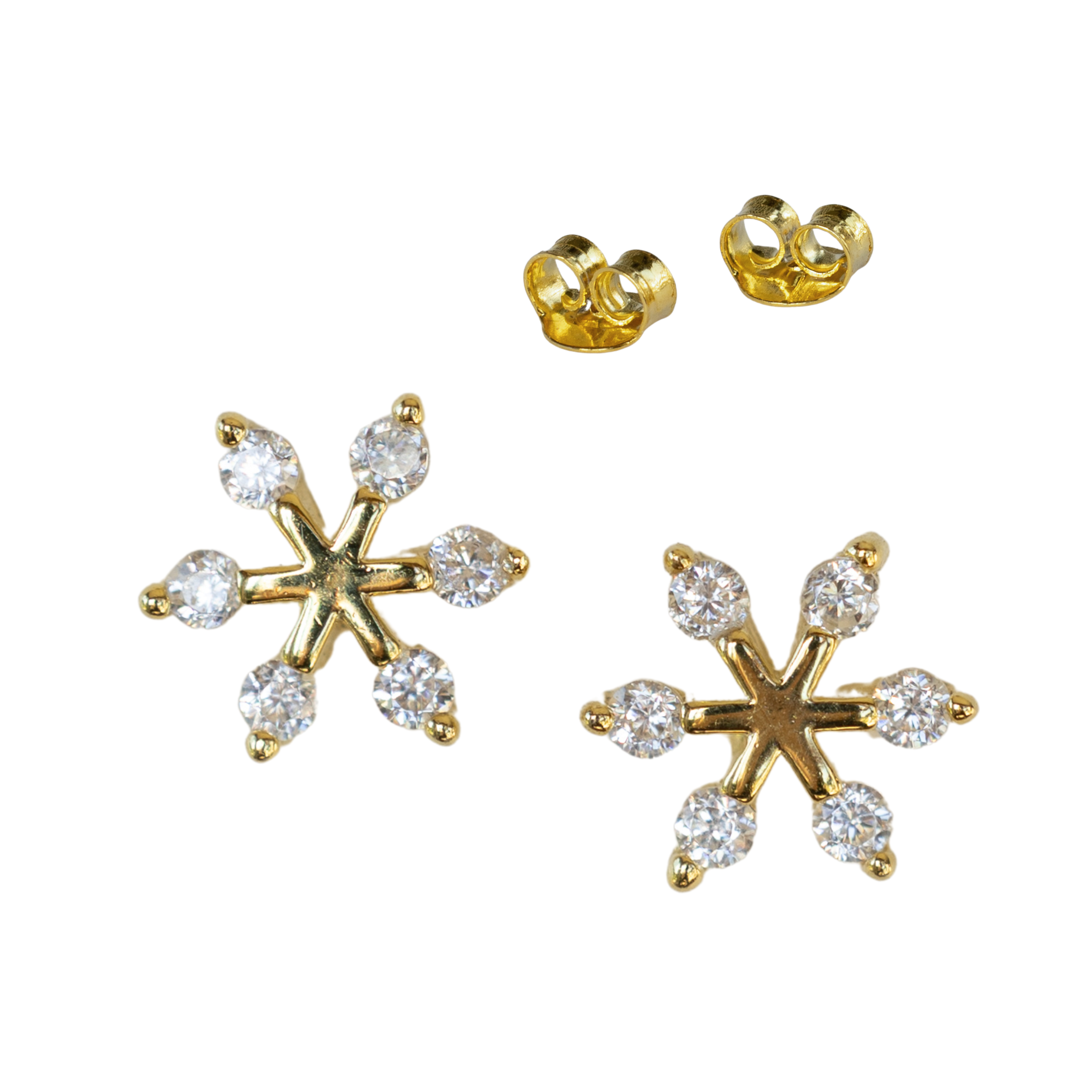 STERLING SILVER GOLD PLATED CUBIC ZIRCONIA SNOWFLAKE STUD EARRINGS