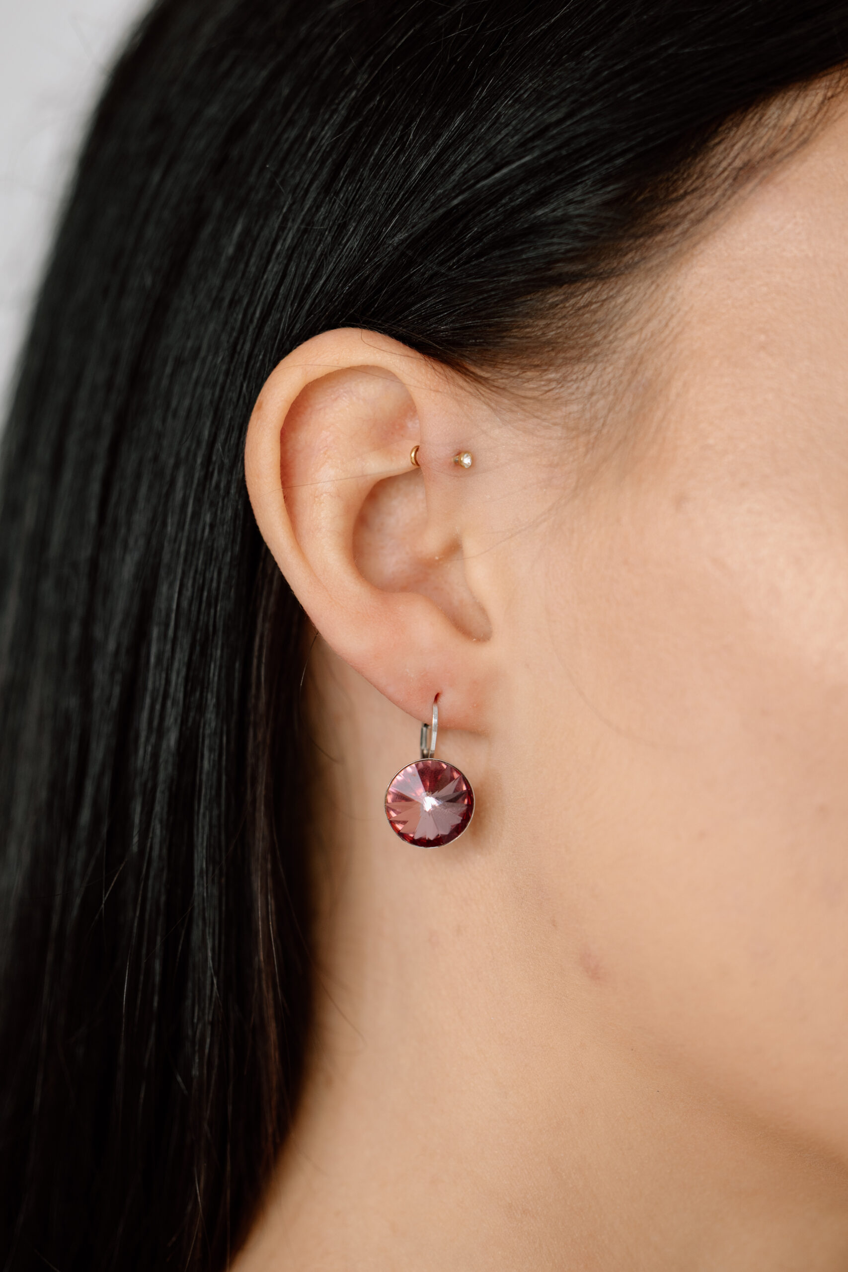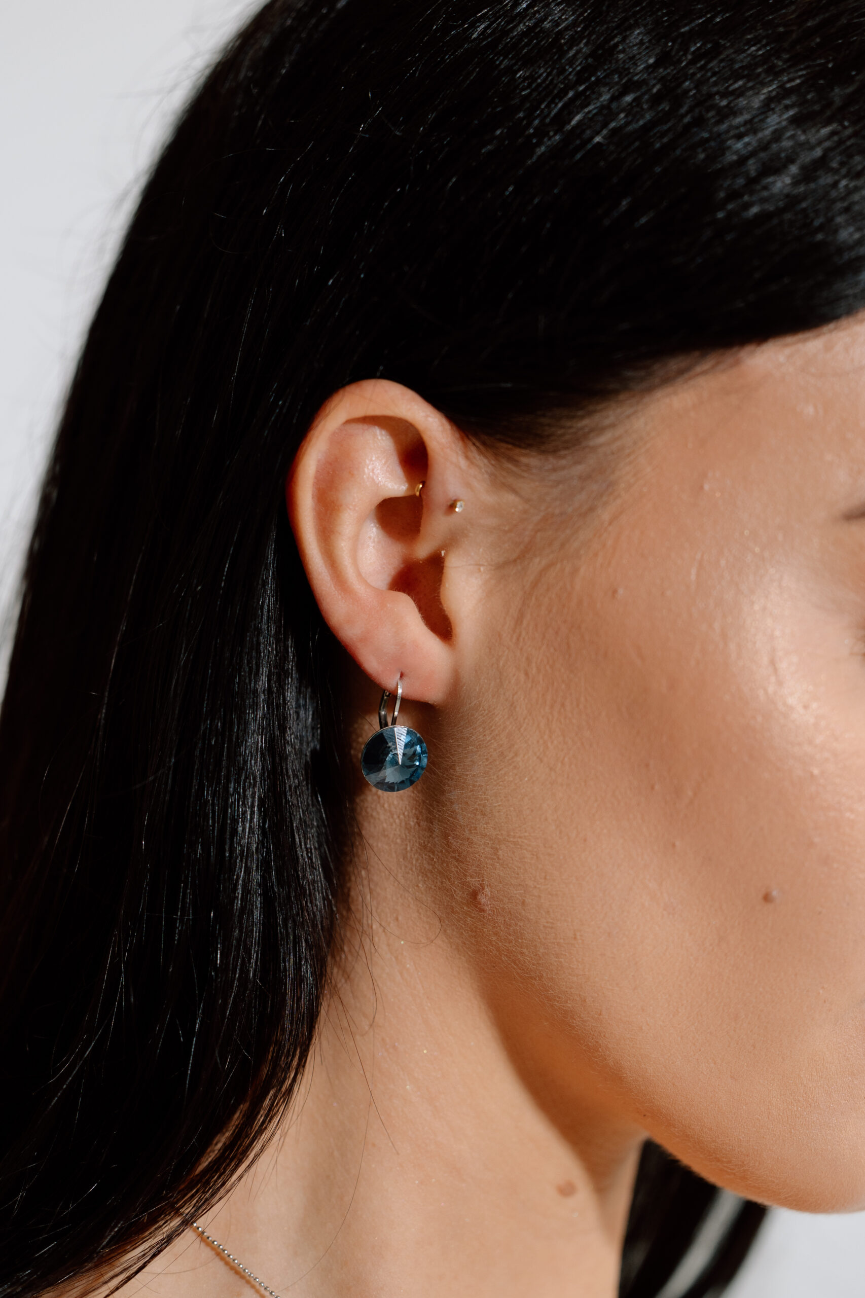 STERLING SILVER SWAROVSKI CRYSTAL RAVIOLI CUT EARRINGS